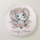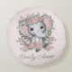 Cute Elephant Pink Floral Polka Dot Child's Name Round Cushion
