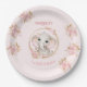 Cute Elephant Pink Flowers Roses Birthday Girl Paper Plate