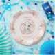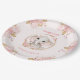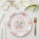 Cute Elephant Pink Girl Floral Roses 1st Birthday Paper Plate