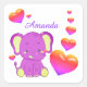 Cute Elephant Pink Purple Hearts Girl Square St Sticker