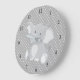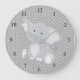 This cute elephant design is the perfect theme for your baby's nursery. Featuring a grey elephant on a grey and white polka dot background the hands and numbers on the clock is also grey. Place your order today!
