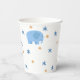 Cute funny blue elephant and stars Paper Cups for baby boy or kids birthday party in zoo or safari theme.