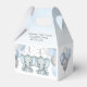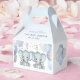 This adorable baby shower favour box features blue and grey twin baby boy elephants with balloons and confetti. Easily customised for your event by clicking personalise. Perfect for your shower guests!