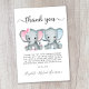 Cute Elephant Twin Girl Boy Baby Shower Thank You Card