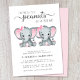 Cute Elephant Twin Girls Baby Shower By Mail Invitation