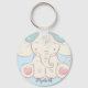 Design is composed of a cute baby elephant with a blue bow. Add your name.