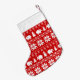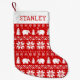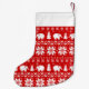 Nordic Style Red and White Patterned Christmas Stocking for Elephant Lovers. An adorable holiday stocking with knitted style pattern. Personalise this cute xmas stocking with your name so Santa will be sure to know it's yours. Perfect to fill with goodies for someone you love.
