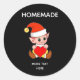 Cute elf holding a heart and Homemade text on black Stickers. Text can be personalised.