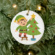 Cute Elf Decorating Tree Personalized Family Name Ceramic Tree Decoration