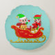 Cute Elf on Christmas Sleigh on Teal Round Cushion