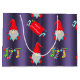 This cute blue Christmas gift bag has a pattern of little Christmas elves (or Santa's helpers) with red, pointy hats and long, pointy beards. All around them are little candy canes, Merry Christmas signs and multi-coloured, striped Christmas stockings.
