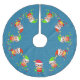 Cute Elves on Sapphire Blue with Snow Accent Brushed Polyester Tree Skirt