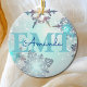 Cute EMT Ice Blue Snowflake Personalized Name Ceramic Tree Decoration