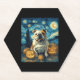 Cute English Bulldog Dog Halloween Jack O Lantern Pumpkin Face Starry Night Van Gogh Style