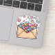 Pastel-coloured hearts float out of an envelope. A cute Valentine's Day sticker.
