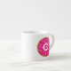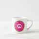 Cute espresso cup mug with pink glazed doughnut logo. Add your own personalised name initial. Funny little mug for men and women. Cool Birthday or Christmas gift idea for him or her. Make one for friends, family, co worker, colleague, boss, coffee lover, mum, dad, employee, teacher, coach etc. Customisable colours. Handy for home or office. Double sided print.