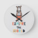 I bought the clock as a 'first time' grandmother. When I opened the package, I cried. the workmanship, material, color and the opportunity to personalize it was just perfect. I know that my grandson will be able to quickly learn to identify numbers, count and tell time! What a keepsake! I was totally happy with the printing, color choice and overall presentation of the clock!