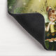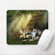 A Fantasy themed design with a little fairy and her white mouse friend featuring a backdrop of mushrooms green grass and beaming light sky.
