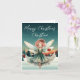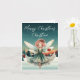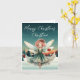 Cute Fairy Christmas Card - A beautiful festive fairy standing on a snowy hill, a town behind her. She is holding a small gift just for you. Personalise this card for your nearest and dearest. On the outside the card says "Merry Christmas" and inside, "wishing you a magical Christmas time"