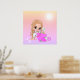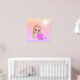Cute fairy elf with daisy flower and monogram on pink shades background. Ideal for nursery, kids room and more.