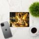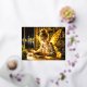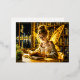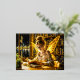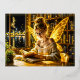 Cute fairy teen reading magical sparkles light foil holiday postcard