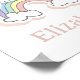 Nursery poster with cute fairy unicorn on rainbow for baby girl room.