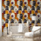 A pretty fall wallpaper featuring an orange , black and beige pattern. Perfect for an accent wall or for a room makeover to elevate the aesthetic of your space.
