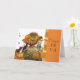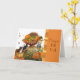 This note card was designed from a scan of art that I had put together. It shows a wheelbarrow of fall-harvested crops and flowers along with autumn leaves and a cat in an apple basket. A cute card that you may personalise with your own words. The inside is blank.