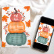 Celebrate your bridal shower this fall autumn season with this adorable stack of pumpkins in dusty rose pink, orange and dusty retro blue with brown vines, orange leaves and white berries with falling maple leaves. Perfect fall autumn Halloween bridal shower.