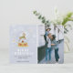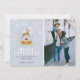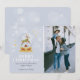 A cute family photo holiday card to send out to friends and family wishing them a Merry Christmas. Featuring an endearing watercolor carousel in a magical snowglobe on a pale winter blue background with yellow stars, transparent snow circles and a template that is easy to personalise.