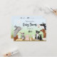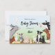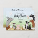 Down on the farm all the animals are super excited to welcome a new arrival! This cute personalized baby shower invitation features a donkey, a goose, a hen and her chicks, a baby goat, a piglet, a rabbit, two lambs, a border collie, a black cat and a cow and her calf.