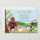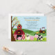 This 5x7 cute fall / autumn farm birthday party invite has a tractor in the background with a barn and some farm animals including a pig, cow, a sheep, and a rooster. There are a couple of pumpkins next to the red tractor and fall coloured leaves on the tree. You can easily customise your party information in the middle. Graphics by BabyStar Design at MyGrafico.com
