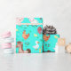 Cute Farm Animals Barnyard Teal Wrapping Paper
