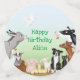 Celebrate a child's birthda in style with this cute farm animal friends table confetti. Featuring a donkey, a goose, a hen and her chicks, a baby goat, a piglet, a rabbit, two lambs, a border collie, a black cat and a cow and her calf, the confetti can be personalized however you like.