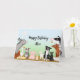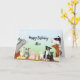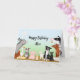 Down on the farm all the animals are super excited for a special birthday! This cute personalized card features a donkey, a goose, a hen and her chicks, a baby goat, a piglet, a rabbit, two lambs, a border collie, a black cat and a cow and her calf.