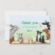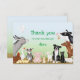 Say thank you for a gift for a baby shower, baptism, christening, naming ceremony or child's birthday party with this cute farm animals friends card featuring a donkey, a goose, a hen and her chicks, a baby goat, a piglet, a rabbit, two lambs, a border collie, a black cat and a cow and her calf.