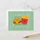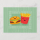 This cute food design features a smiling happy kawaii hamburger and french fries on a cute green background.