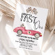 Cute FAST ONE Red Race car 1st birthday Invitation