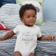 Cute new father baby bodysuit featuring the saying "happy father's day Daddy with love", the child's name and a blue heart. The font styles can be changed easily by clicking on the customise further link after personalising.