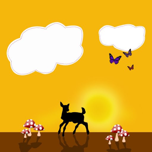 A very cute illustration with a little fawn, butterflies and mushrooms. Beautiful nice gift for children.