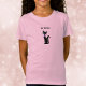 This tee shirt has a cute female black cat with green eyes wearing a pretty pink bow. Customise your text with the template.