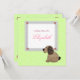 Personalise by adding your baby name to this cute country style girl baby shower invitation with an image of a quilt like brown gingham dog, lace, roses, and a pastel green frame. Matching theme baby party gift set available at PhotographyTK Designs gift store.