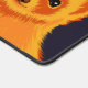 Cute ferret personalised desk mat with a digital illustration in yellow, orange and purple depicting one of these adorable fluffy animals smiling, decorative elements, flowers and stars around it. This sweet design has the customisable text "Cute ferret art Ferrets Are Girls Best Friend". It will make a great gift for a ferret mum and a ferret lover.