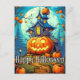 This Happy Halloween postcard features a haunted house & illuminating pumpkin design. Please feel free to adjust all the available options as you wish.