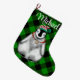 Cute festive holiday Penguin green black plaid Large Christmas Stocking