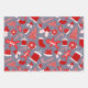 Cute Festive Red Illustrations Christmas Pattern Wrapping Paper Sheet