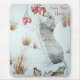 This original painting on this mouse mouse pad shows a cute little wood mouse (also known as a long tailed field mouse) is standing on a snow covered tree stump and reaching up to nibble on a juicy red winter berry. The wood mouse festive snow scene makes a lovely gift for the special people in your life, or perhaps you just want to spoil yourself with this cute little mouse picture. This wildlife art mouse pad is sure to bring a smile.