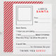 Fill in the blank Letter to Santa stationery. There is a blank square box where your child can draw or doodle what they want for Santa. There are fill in the blank sentences, which he or she can fill in by hand. The back is a red and white design like a candy cane.