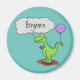 Cute fire breathing green funny dragon cartoon magnet