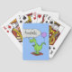 Cute fire breathing green funny dragon cartoon playing cards